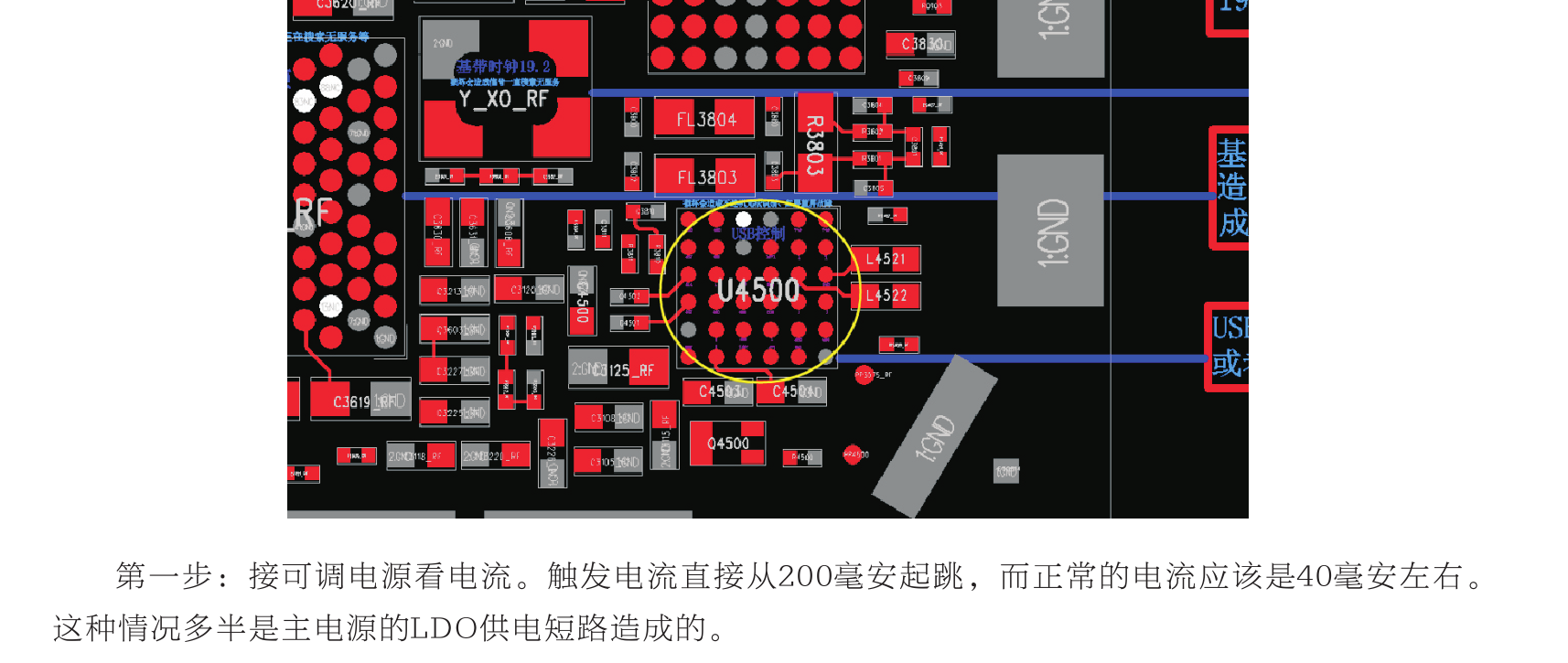 Based on the customer's description, we can judge the location close to the problem, which is caused by charging. The three components Q2300, U2300, U4500, these are directly related to charging, in this direction, we start repairing.